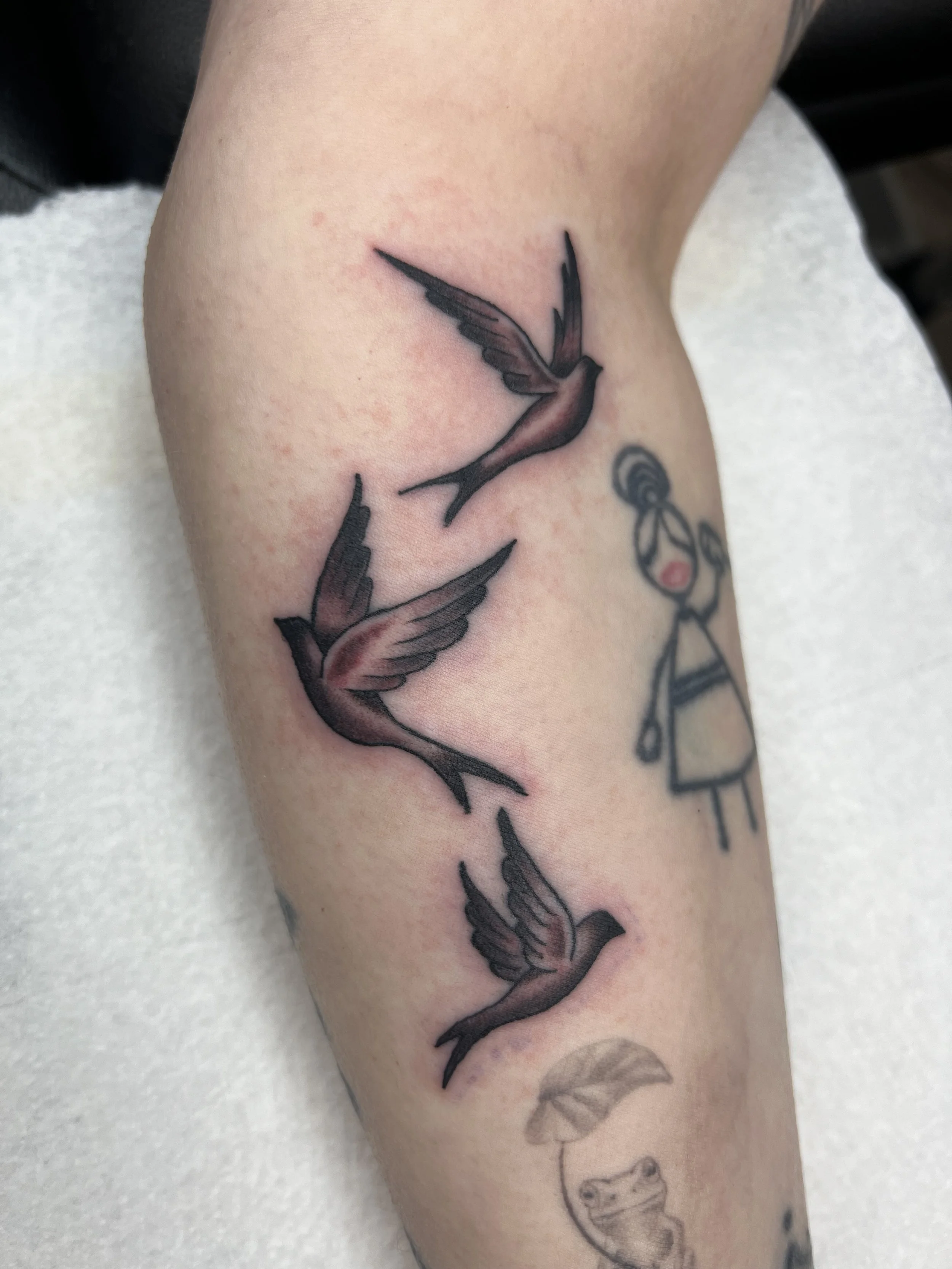 Fine Line tattoos are defined by…fine lines. You can shade them out however you want to, the dotty look compliments the thin lines quite well, but color is always an option. Tapping the picture will take you to the artist’s portfolio and booking information. Contact the artist to discuss your design idea!